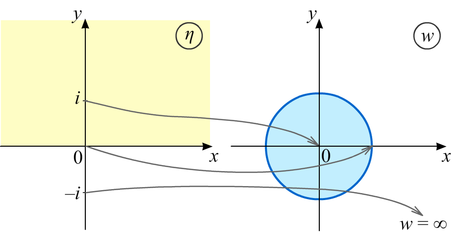 Отображение полуплоскости Im η > 0 на круг |